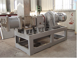 Principle of Work The extruding mode of the screw extrusion granulator with double screw is divided into two kinds of models, which is composed of driving, speed reducer, transmission box and main frame. Under the force of screw component with special design, conveyed and compacted through the pressure un-equalizing process, the wet powdery material fed into the main frame is sent to the pellet head and extruded out of template, forming columnar pelletized products with the same size so as to achieve the goal of palletizing. Since the extrusion and pelletization process for powdery material is completed in the wet state, it make the follow-up operating process (e.g: drying and packaging, etc) and operation condition improved greatly and generally, it can reduce amount of dust on site over 90%.
