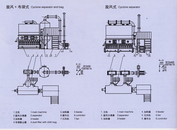 Descriptions Boiling dryer, also known as fluidized bed, through 30 years of use, improvements in the pharmaceutical, chemical, food, food processing, it reflects the increasingly important role.It is by the air filter, bag filter, high pressure centrifugal fan, comprising console. Result of the dry materials are different in nature, supporting removal equipment, according to need and choice of cyclone at the same time, the Department of bag filter, or you can choose one of them.In general, the larger the proportion of materials simply select the cyclone.Lesser proportion of sets of materials required to configure the bag filter, and feed energy back-up device to choose.